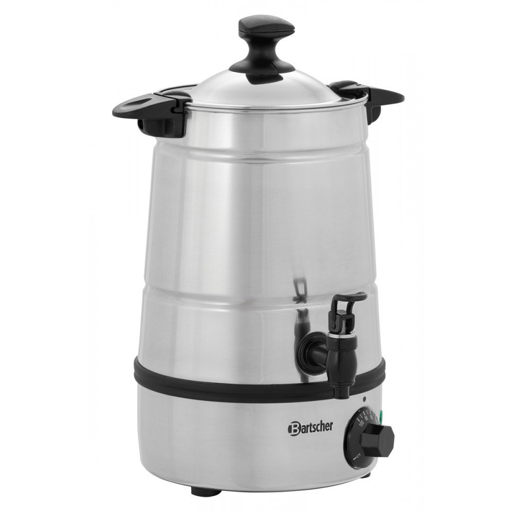 Distributeur d'eau chaude 5L, Boîtier et couvercle en inox, Contenance : 5 litres, Température : de 30 °C à 100 °C, Puissance : 1,8 kW / 230 V 50 Hz, Dimensions : Ø 200 mm, hauteur 400 mm,