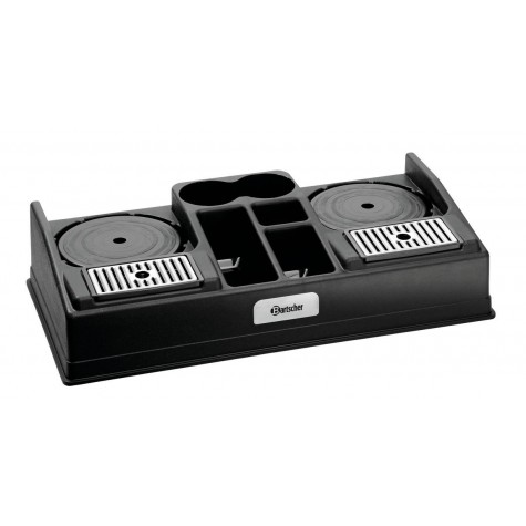 pour 2 cafetières thermos, (pour toutes les cafetières thermos jusqu‘à un diamètre de 19 cm), Matériau : matière plastique, Deux inserts amovibles en matière plastique réglables sur 3 hauteurs, ainsi chaque cafetière thermos peut être utilisée pour de nombreuses, tailles de tasses, Avec 5 rangements pour les gobelets, cuillères/spatules, lait et sucre, Dimensions : L 660 x P 340 x H 145 mm, Inclus 2 inserts en matière plastique et 2 bacs égouttoir, amovibles, Livrée sans cafetières thermos,
